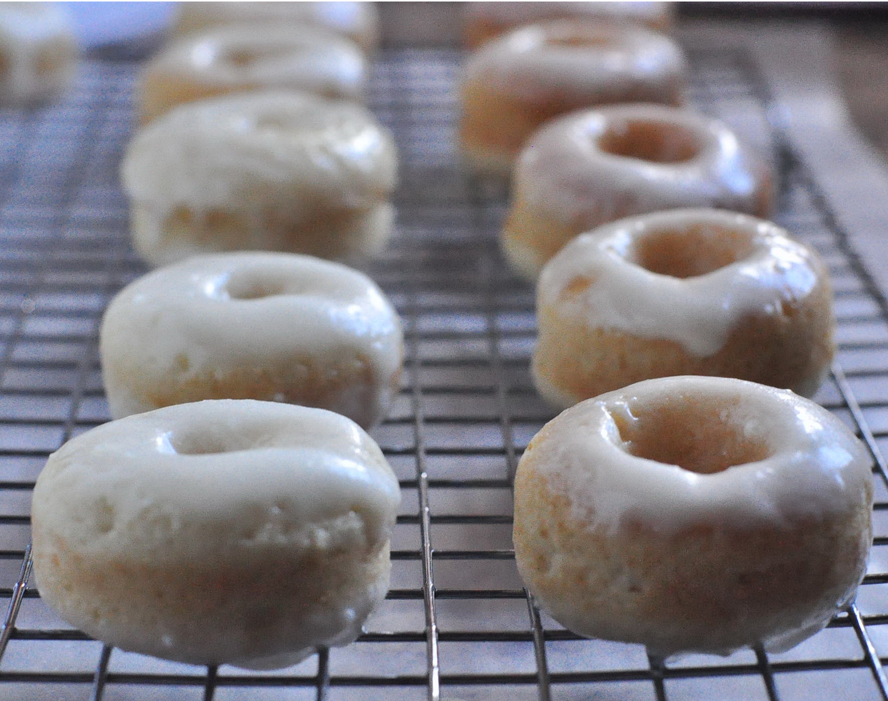 I have been wanting a doughnut pan for a year and a half. It was one of those things on my list, but I never got around to buying. Fortunately, I have a hubby that reads my amazon and ebay wish lists…..so I ended up with a mini doughnut pan- yay for portion control!