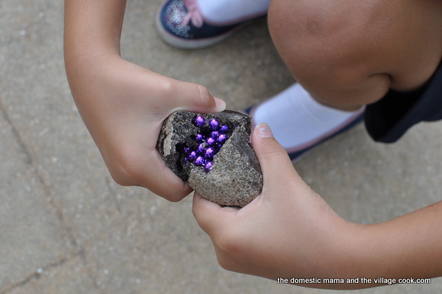 To make them, take 1 c leftover coffee grounds, 1 c flour, 1/2 c salt and enough water to make a dough. Hide little trinkets inside and bake at 150 for 15-17 minutes. Or, set them out in the sun all day. Cool, huh? Have a rock hunt. If I were a guy, I would hide a diamond in one. How cool would that be?! A rock in a rock. So clever.