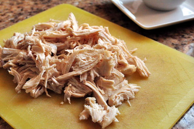 Now: the chicken and some other things go in to make a filling and a sauce:
