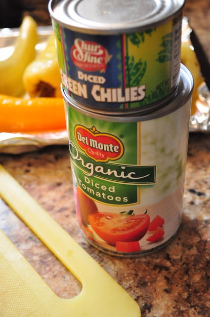 As for the tomatoes and green chilies, place them in a pan with the chicken… add some seasonings and a few blogs of cream cheese. Did I just say blobs? Heck yes.