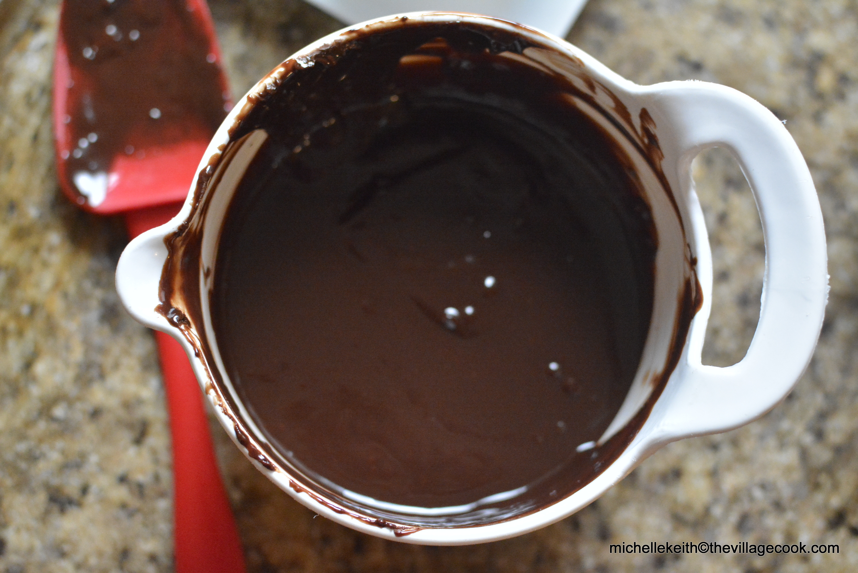- In a double boiler, over medium heat melt chocolate and butter until smooth add vanilla and salt