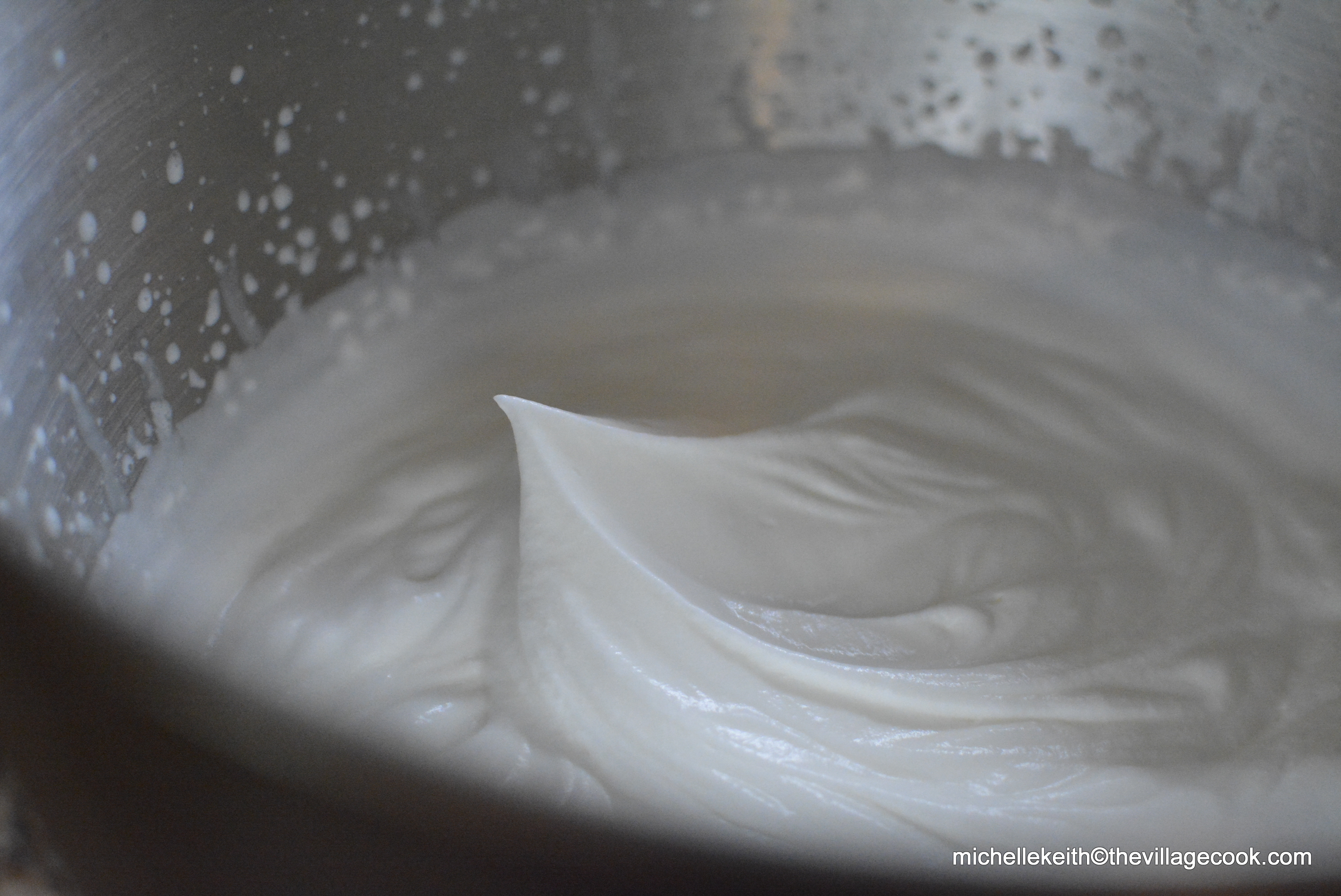 Gently fold the two mixtures together, and spoon into a pastry bag fitted with a star tip.