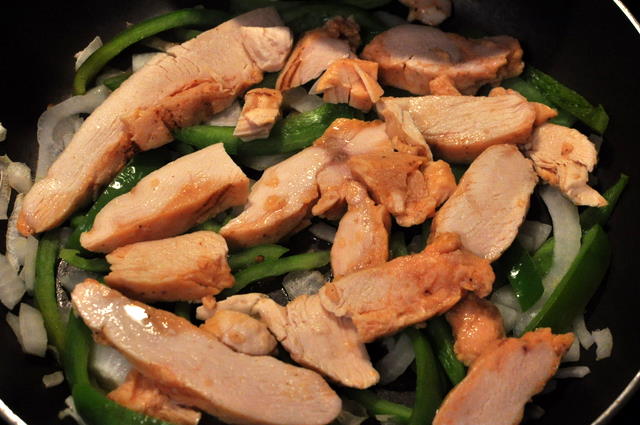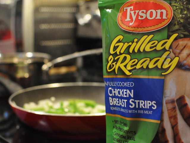 I ended up making fajitas because I got a coupon for some free Tyson grilled and ready chicken. And, there was no way we were going to grill our own chicken since it was rainy. Grilling in the rain is lame.