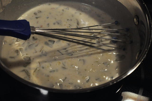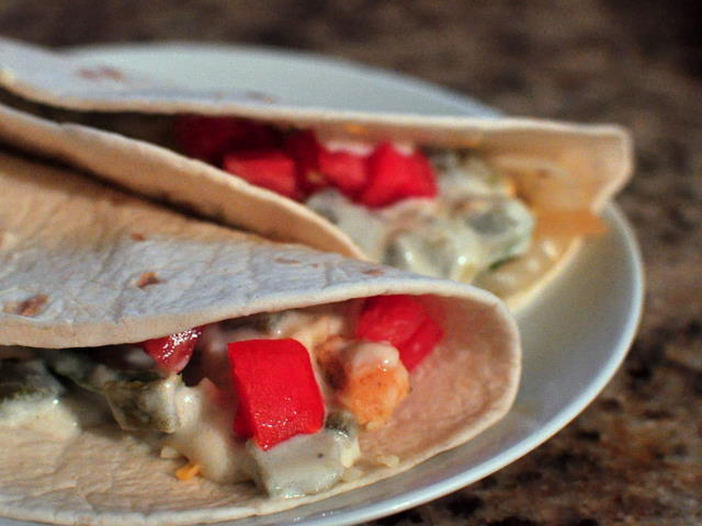 Well, this is what I ate last night. Chicken fajitas with a green chile cheese sauce that I whipped up on a whim. It’s a good thing I noted what I made the sauce with- because now y’all can make it, too.