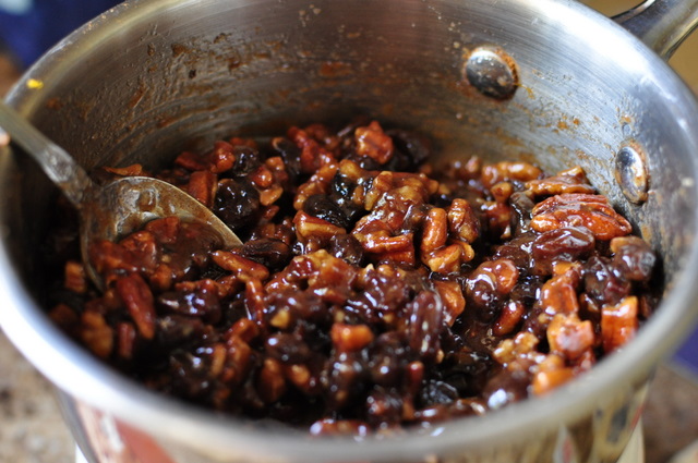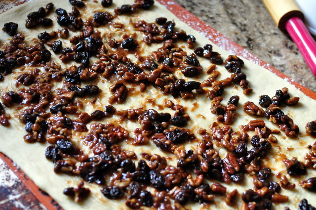 Doesn’t my filling look gross? LOL, brown things never look appealing. This brown stuff is rum, raisins, pecans, vanilla brown sugar, cinnamon, and a dash of orange zest. There. It may “look” a little better now.