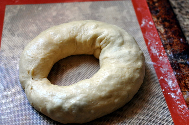 Spread over your dough rectangle, and roll up lengthwise. Join the edges together to form an oval.