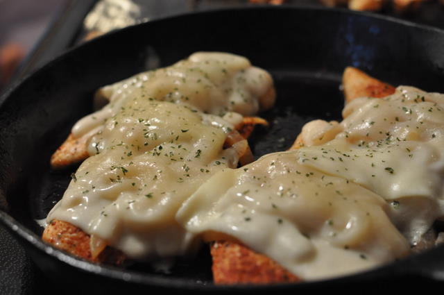 Place your onions back on top of the chicken, and top with cheese. How easy was that?