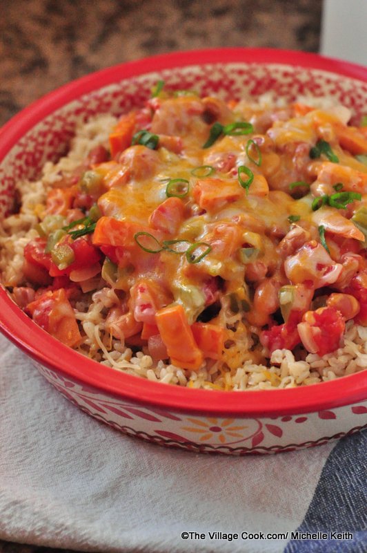 This is the perfect side dish to make, and it makes an especially nice lunch the next day. I speak from experience. And, since it’s made with brown rice, veggies and beans it’s healthy, too. Gotta get your veggies, you know. Mama was right. This is also a good dish to use up leftover rice, which I always seem to have.
