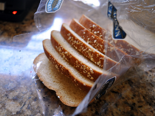 Start with fresh bread- I used Nature’s Pride Oatmeal. Because oatmeal is yummy.