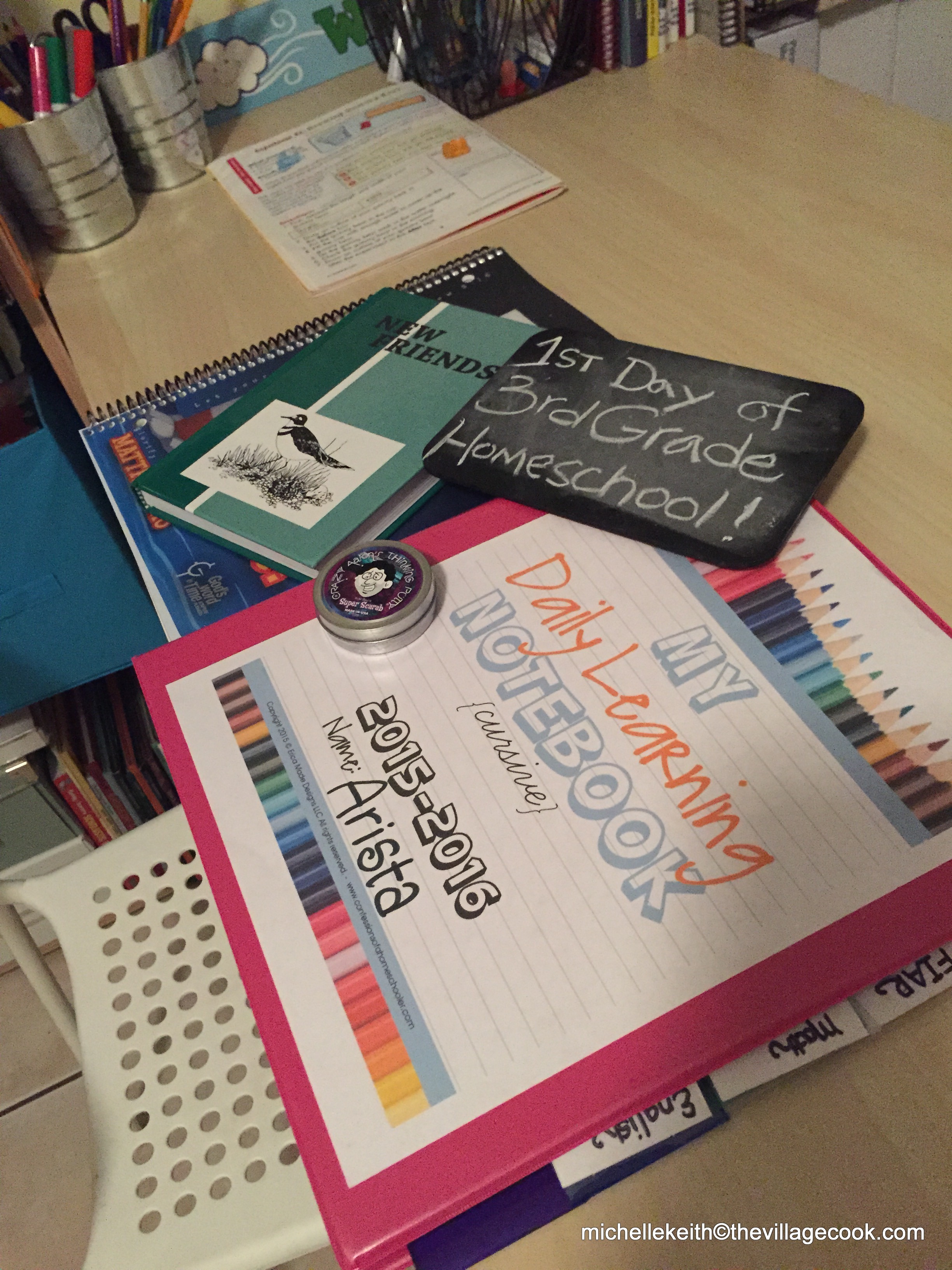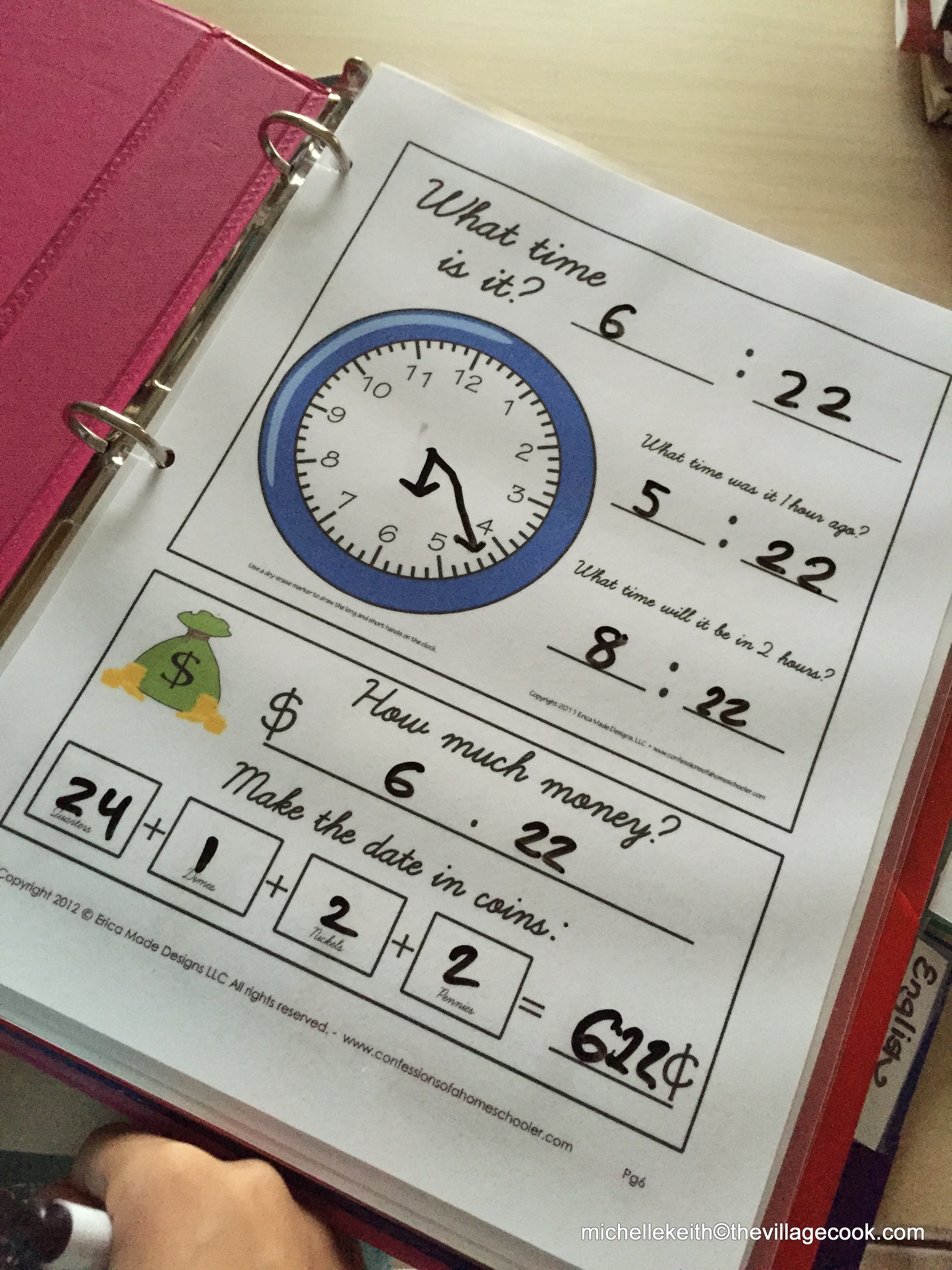 We start each day with a Daily Learning Notebook, I got it here: Daily Learning Notebook (This gives me a chance to do dishes and load the washer while she works on it)