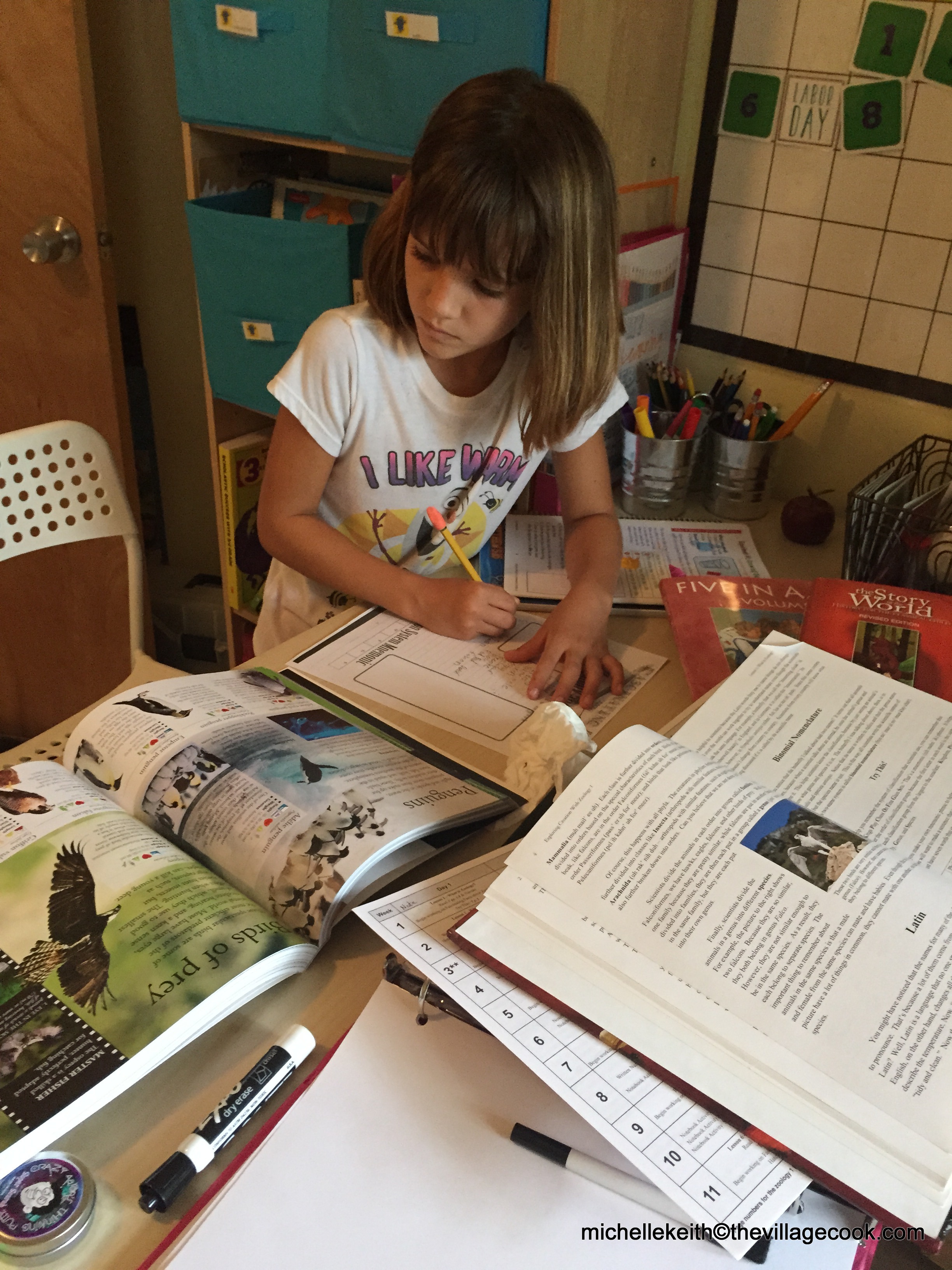 So far, our first week had worked out smoothly, with our schooling completing before noon. 🙂 In the afternoon we market, eat lunch, prep dinner, and enjoy our “recess”.