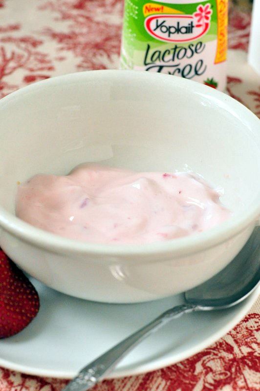 Yep, the nice folks at Yoplait gave me some of their NEW lactose free yogurt right to my door. And, my girls started making dibs on what they wanted. Turns out, there was NONE that they didn’t want. So, I shared & of course they loved it all. Usually, I’ll try to chop up some extra fruit to put in the yogurt- but with this yogurt, my daughter chose to dip her berries. So… not only is it yogurt, it’s also a dip. Four year olds can teach you a lot of those “why didn’t I think of that” times. Now, I also managed to stake claim to some, and ooo, it was yummy. I know that’s not an adult term- but it was. It was surprisingly thick and creamy ces ci bon. 🙂 Isn’t that what their old ads said?